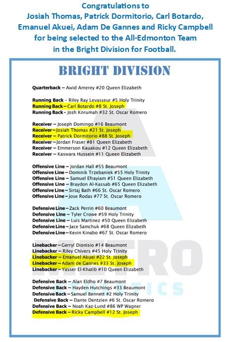 All inquiries related to Saints Athletics, please contact our Athletic Director, Adam Skitsko at (780) 426-2010 or email him at adam.skitsko@ecsd.net.
