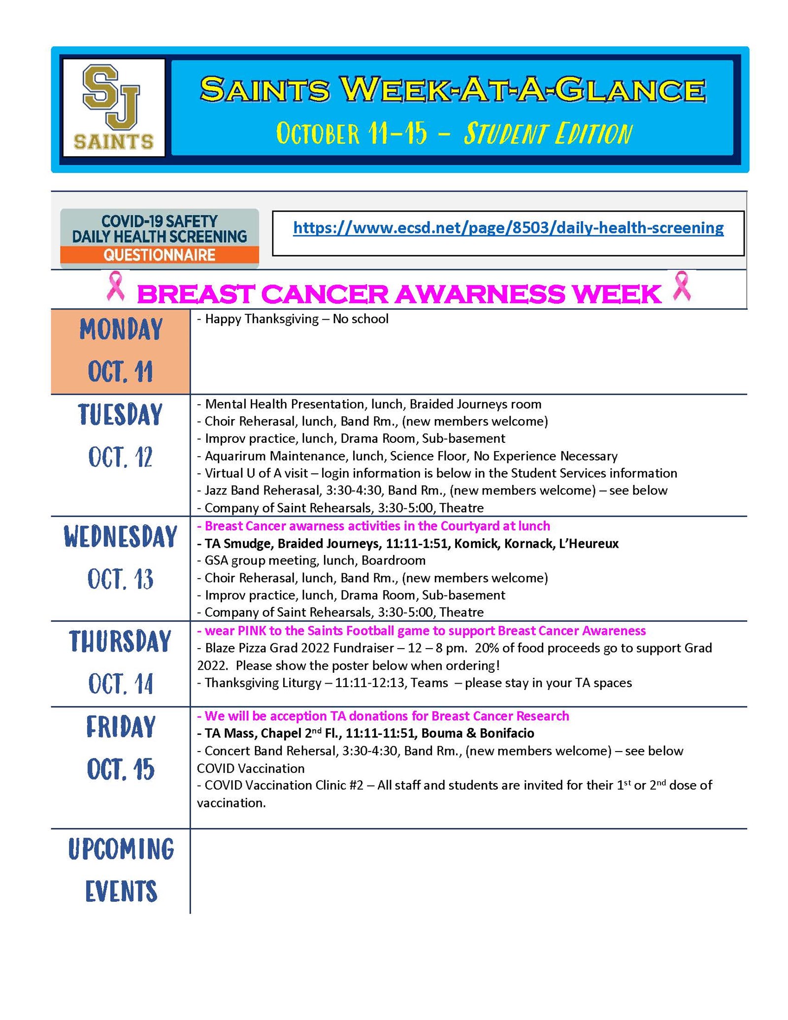 Saints Week At A Glance - Oct 12-15