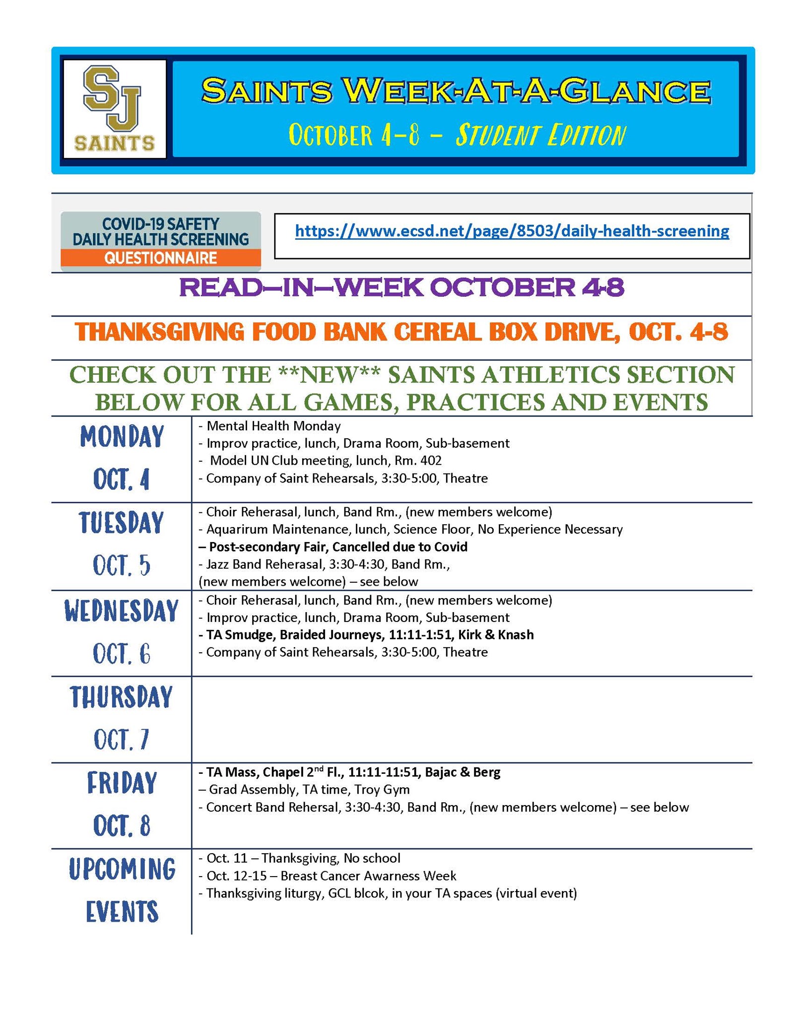 Saints Week At A Glance - Oct 4-8